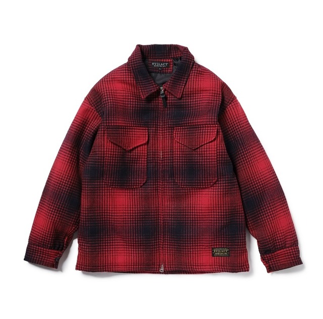 EVILACT CHECK PADDED JKT RED WOOL のチェック生地をアウトシェルに使用し、高機能中綿でインナーを仕上げたシャツジャケット。 フロントZIP 仕様でサイドポケットにもZIP を配置し小物等の落下防止仕様にしている。 一見普通のシャツに見えるが細かいディティールをジャケット化しているので利便性の高いシャツジャケットに進化させたデザイン。 color : RED FABLIC OUTER : WOOL 80%, ESTER 20% INNER : POLYESTER 100% LINING : POLYESTER 100% S 着丈 : 68cm 肩幅 : 48cm バスト : 57cm 袖丈 : 57cm M 着丈 : 70cm 肩幅 : 51cm バスト : 60cm 袖丈 : 58cm L 着丈 : 72cm 肩幅 : 54cm バスト : 63cm 袖丈 : 59cm XL 着丈 : 74cm 肩幅 : 57cm バスト : 66cm 袖丈 : 60cm ※商品によって、サイズ感が変わります。寸法は若干誤差がございますが、お手持ちの商品の寸法などをご参照の上、お選びください。 ※ご利用のモニタ環境によっては、実際の色と若干異なる場合がございます。 ※お客様のご都合による返品、交換は不可とさせていただきますので、あらかじめご了承ください。