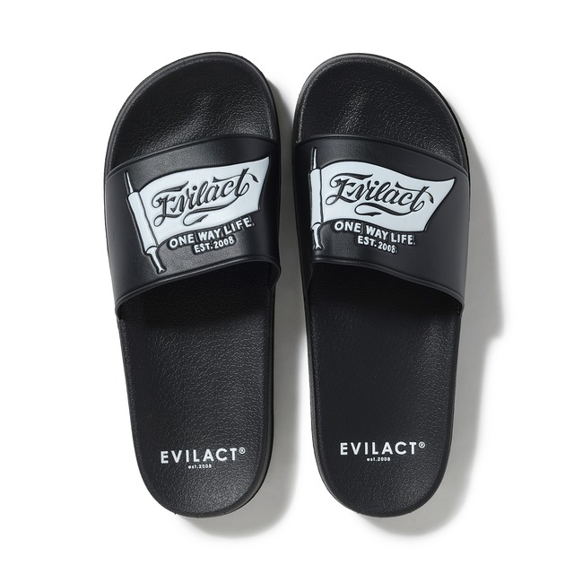 EVILACT SHOWER SANDAL BLACK 「EVILACT FLAG」ロゴをエンボス加工であしらったシャワーサンダル。 26cmと28cmの2サイズ展開。 FABLIC : EVA COLOR : WHITE, BLACK SIZE : 26cm / 28cm ※寸法は若干誤差がございます。 ※ご利用のモニタ環境によっては、実際の色と若干異なる場合がございます。 ※お客様のご都合による返品、交換は不可とさせていただきますので、あらかじめご了承ください。