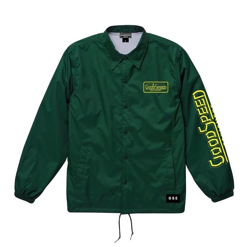 GOODSPEED equipment オリジナルロゴデザインのコーチJKT。表のナイロン⽣地には、フッ素系撥⽔。
