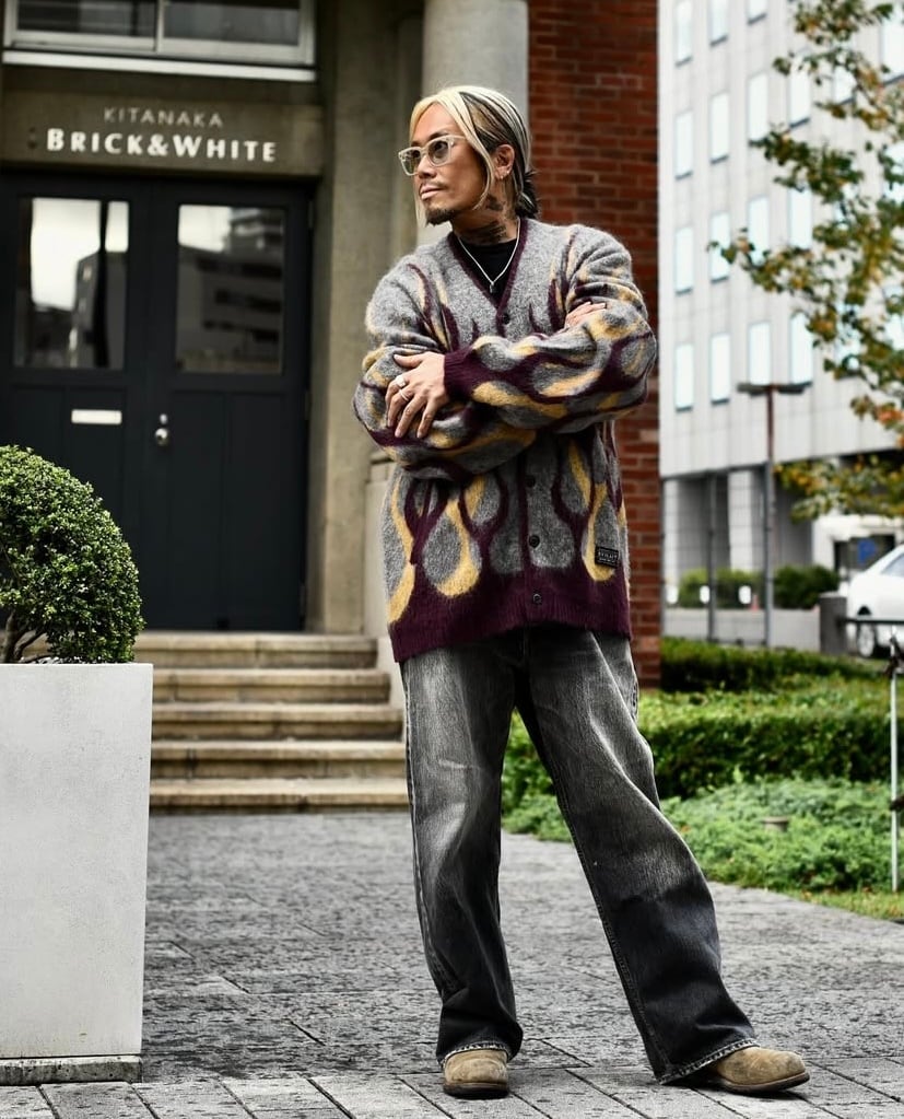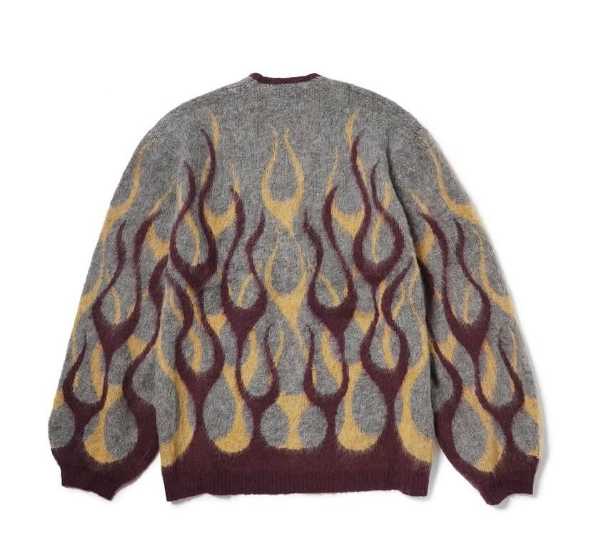 3種類のフレイムスをMINATO 氏が書き下ろし、フレイムス同士が重なる箇所まで繋がる様に立体的に組み立てて構築したオリジナルデザインのカーディガン。