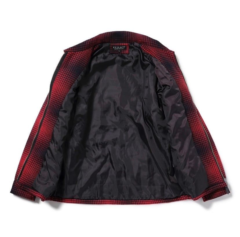 WOOL のチェック生地をアウトシェルに使用し、高機能中綿でインナーを仕上げたシャツジャケット。