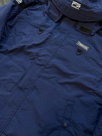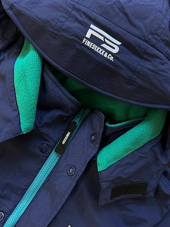 撥水性に優れたナイロン素材はフードの脱着が可能。裏面はふんわりとした着心地の良い暖かな厚手フリース素材が防寒性を兼ね備えます。