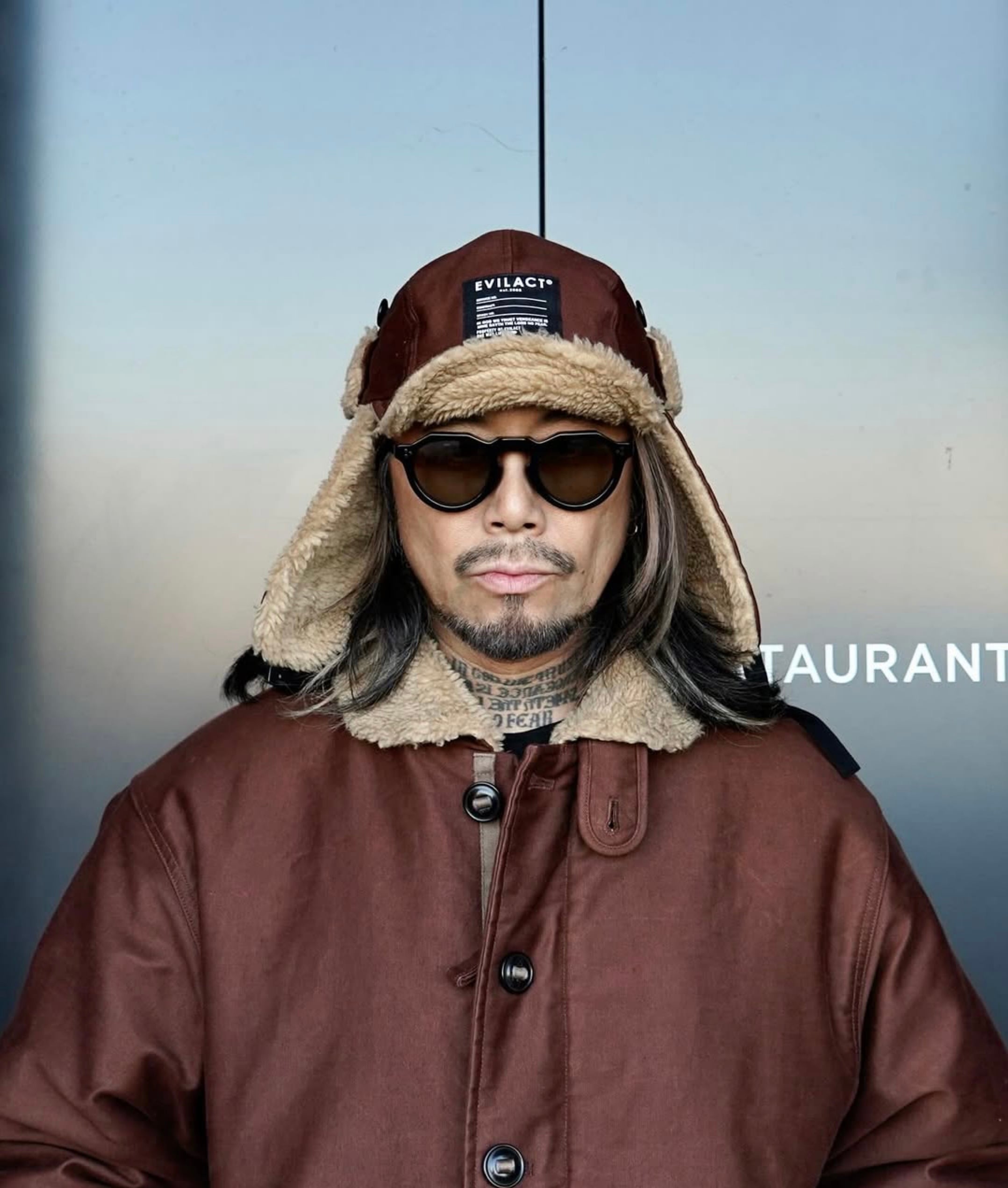 表地に使用したヘビーオンスのコードクロスの裏には特殊なシリコン加工を施し防風防水性を最大限に高めたオリジナルファブリックを使用したFLIGHT CAP。