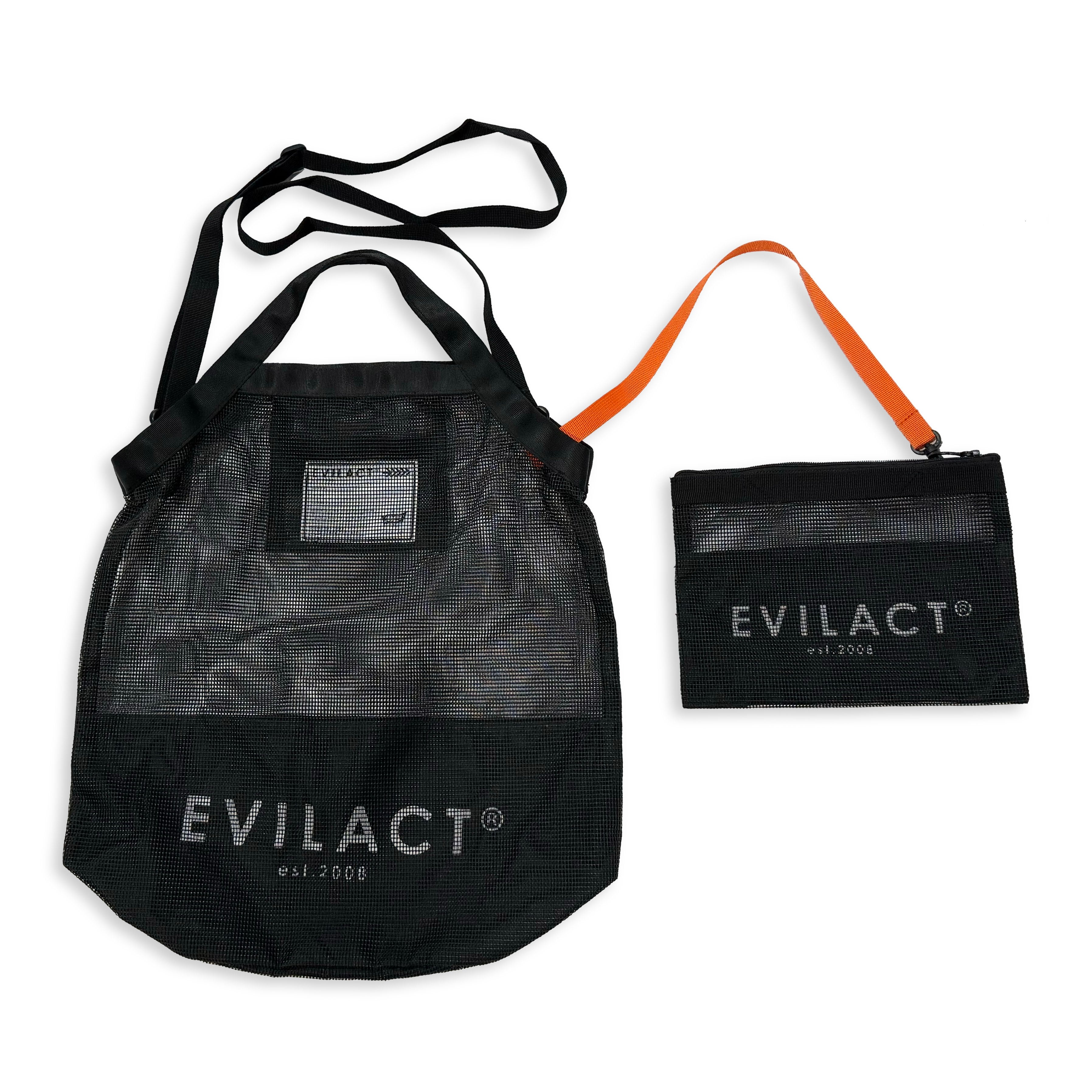 硬めのメッシュ生地で製作したトートバッグとポーチのセット。