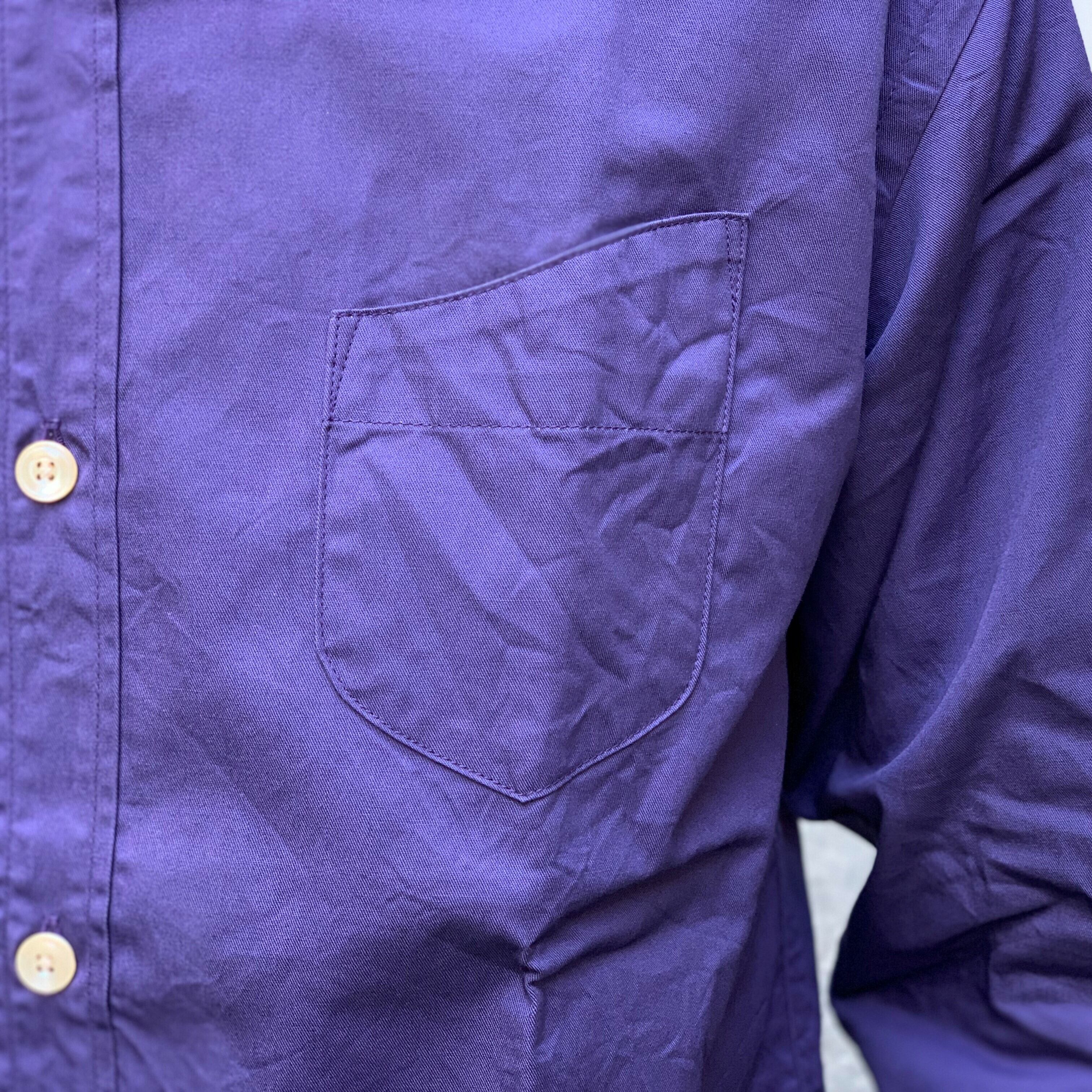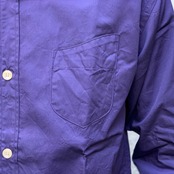 独特な第5ボタンで終わった前立てから緩やかにカーブを描き膨らむ左身頃は、シャツインの際に出でこないように機能したデザインです。
