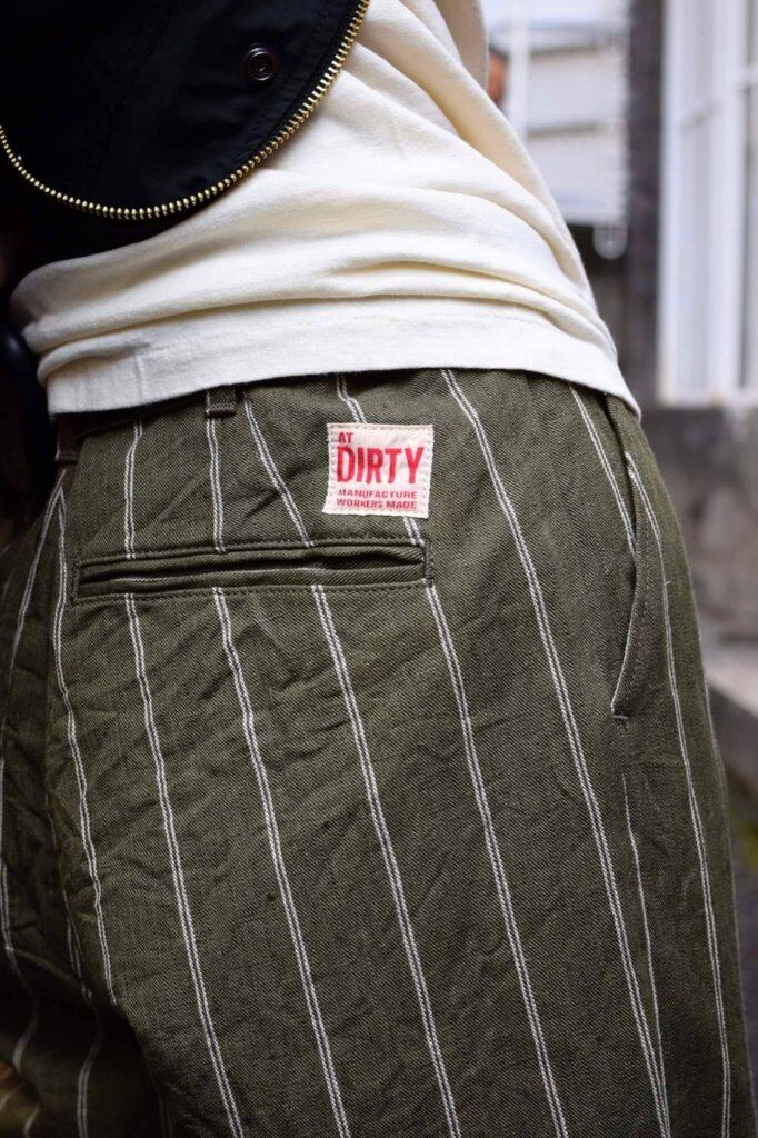 内側にAT-DIRTYステンシルプリント。麻素材のストライプ生地となります!